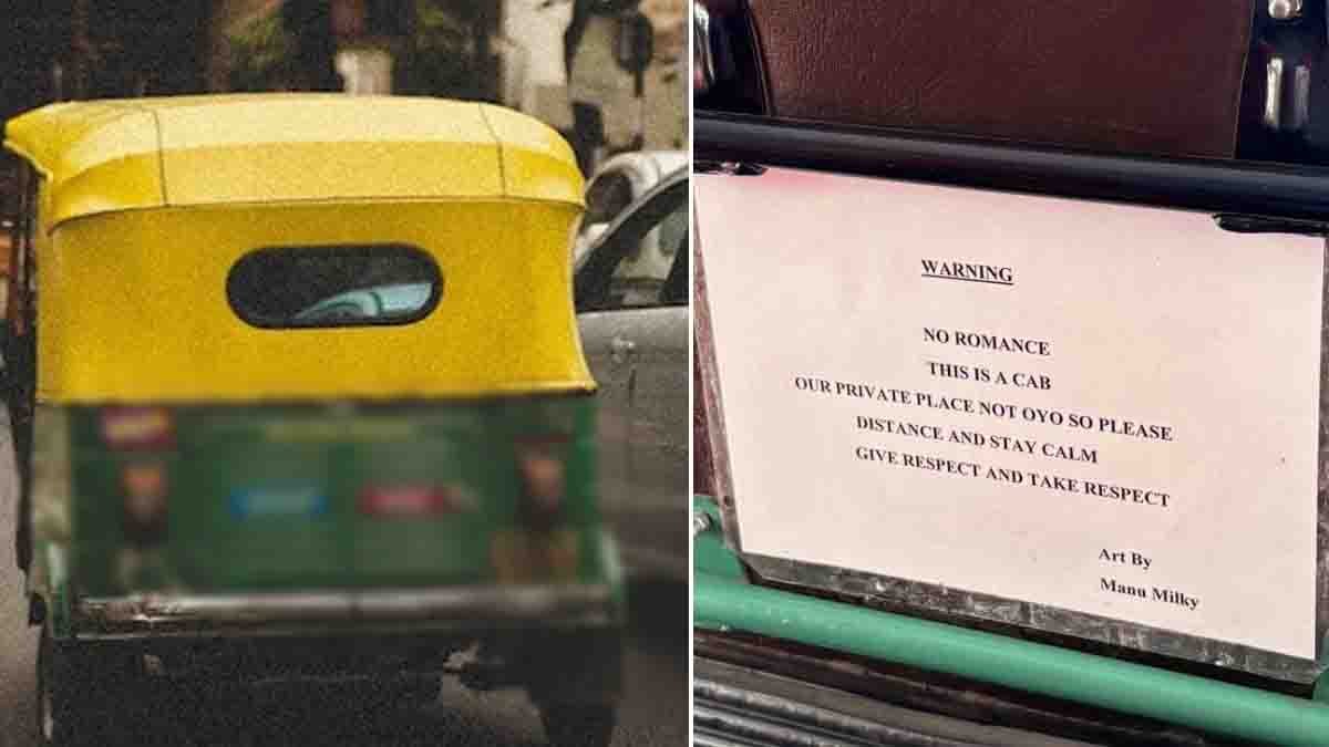 “ಎಚ್ಚರಿಕೆ! ಇಲ್ಲಿ ರೊಮ್ಯಾನ್ಸ್ ಬೇಡ. ಇದು ಕ್ಯಾಬ್, ನಮ್ಮ ಖಾಸಗಿ ಸ್ಥಳ, OYO ಅಲ್ಲ. ಆದ್ದರಿಂದ ದಯವಿಟ್ಟು ಅಂತರ ಕಾಪಾಡಿಕೊಳ್ಳಿ ಹಾಗೂ ಶಾಂತವಾಗಿರಿ. ಗೌರವ ನೀಡಿ ಮತ್ತು ಗೌರವವನ್ನು ಪಡೆಯಿರಿ. – ಆರ್ಟ್ ಮನು ಮಿಲ್ಕಿ”