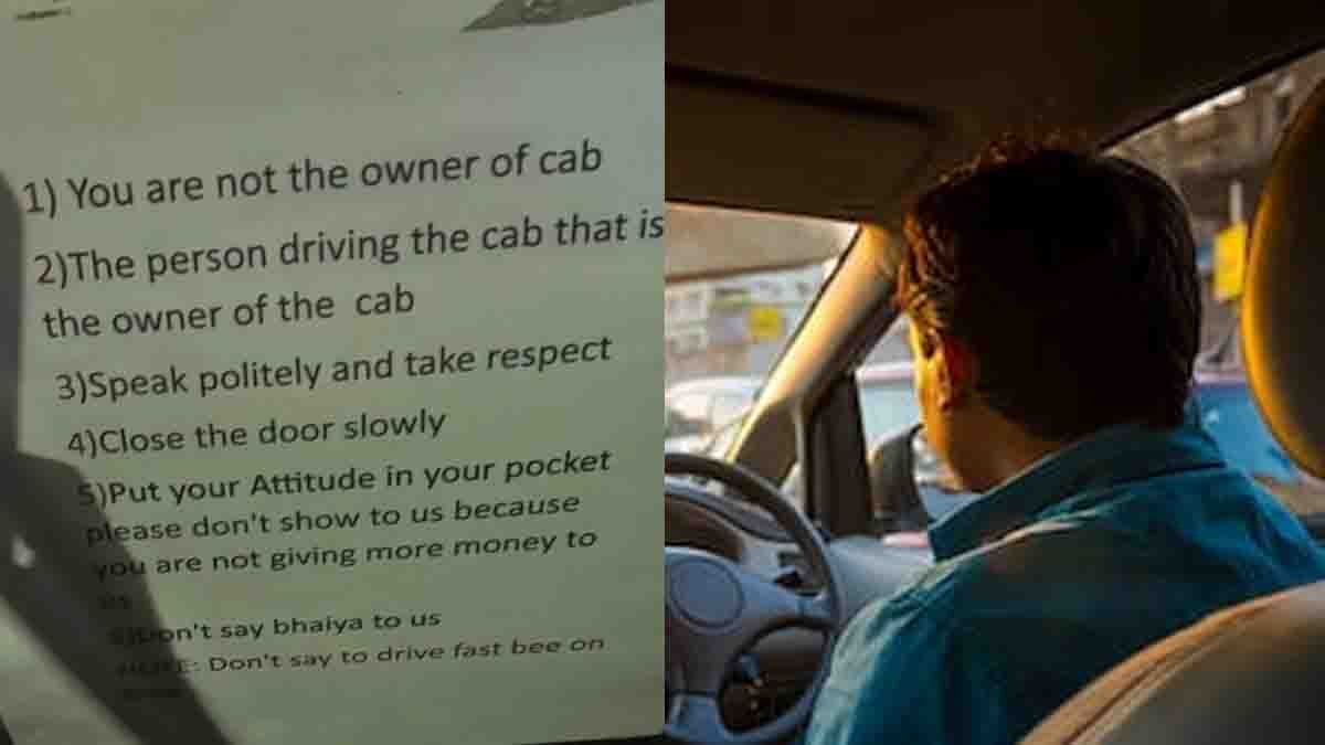 ಕ್ಯಾಬ್ ಡ್ರೈವರ್ ಸೀಟಿನ ಹಿಂದೆ ಅಂಟಿಸಲಾದ ಈ ನೋಟಿಸ್ ಬೋರ್ಡ್, ಪ್ರಯಾಣಿಕರಿಗೆ ನೇರ ಮತ್ತು ಖಡಕ್ ಎಚ್ಚರಿಕೆ ನೀಡುತ್ತದೆ. ಡ್ರೈವರ್‌ಗಳು ಎದುರಿಸುವ ಸಾಮಾನ್ಯ ಕಿರಿಕಿರಿಯನ್ನು ಇವು ತಿಳಿಸುತ್ತವೆ. ಆ 7 ನಿಯಮಗಳು ಇಲ್ಲಿವೆ: