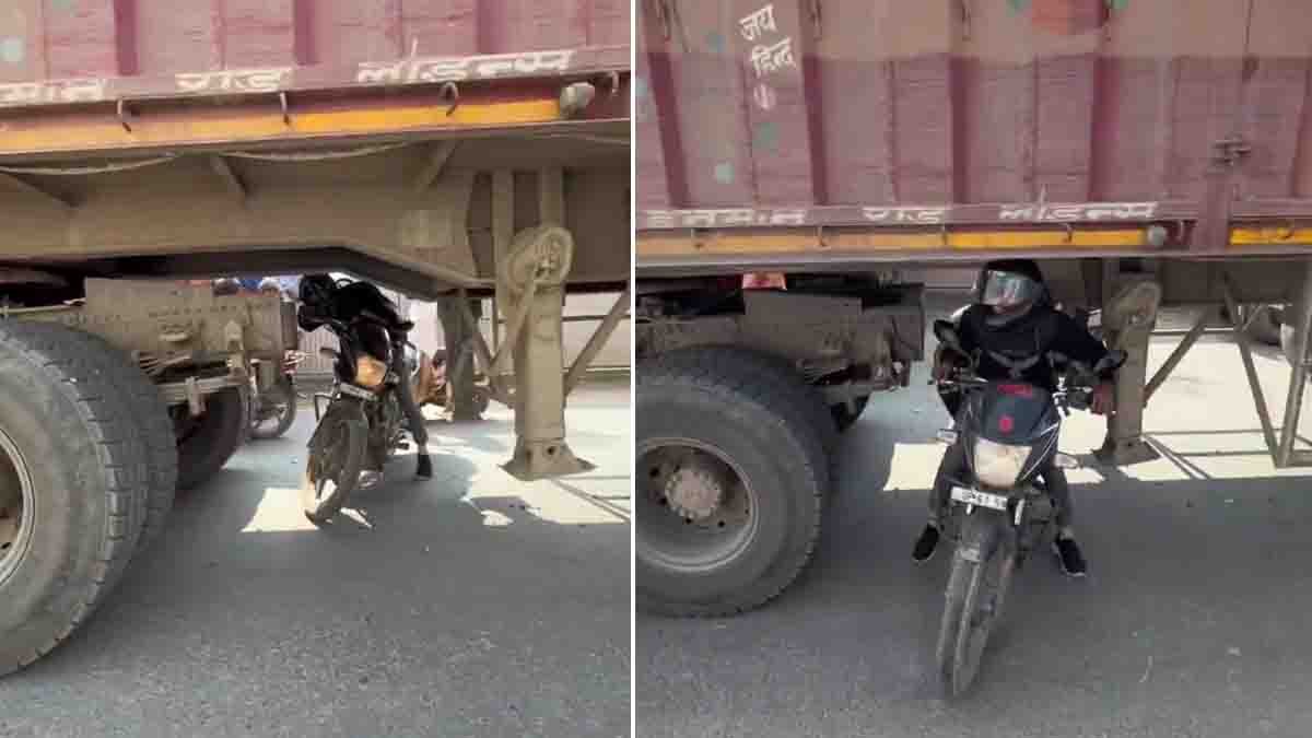 ಆತನು ತನ್ನ ಪ್ರಾಣವನ್ನು ಪಣಕ್ಕಿಟ್ಟು, ರಸ್ತೆಯಲ್ಲಿ ನಿಂತಿದ್ದ ಬೃಹತ್ ಕಂಟೈನರ್ ಟ್ರಕ್ನ ಕೆಳಭಾಗದಿಂದ ತನ್ನ ಬೈಕ್ ಅನ್ನು ನುಗ್ಗಿಸಿ, ಅದನ್ನು ದಾಟಿ ಹೊರಬಂದಿದ್ದಾನೆ. 56 ಸೆಕೆಂಡುಗಳ ಈ ವಿಡಿಯೋವನ್ನು ನೋಡಿದ ಎಷ್ಟೋ ಜನರಿಗೆ ಎದೆ ನಡುಗುವುದು ಖಚಿತ. ಸ್ವಲ್ಪ ಯಡವಟ್ಟಾದರೂ, ಟ್ರಕ್ ಚಲಿಸಿ ಆತನ ಜೀವಕ್ಕೇ ಅಪಾಯವಾಗುವ ಸಾಧ್ಯತೆ ಇತ್ತು.