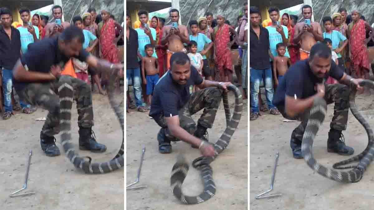 ಹಾವಿನ ದಾಳಿಯ ಸಮಯದಲ್ಲಿ ಸ್ವಲ್ಪ ಮೈಮರೆತಿದ್ದರೂ ಆ ಉರಗ ತಜ್ಞನ ಪ್ರಾಣಕ್ಕೆ ಕುತ್ತು ಬರುತ್ತಿತ್ತು. ಆದರೆ ಆಕಾಶ್ ಜಾಧವ್ ಅವರು ತಮ್ಮ ಅದ್ಭುತ ಕೌಶಲ್ಯದಿಂದ ಮಿಂಚಿನ ವೇಗದಲ್ಲಿ ಪಕ್ಕಕ್ಕೆ ಸರಿದು (Giant King Cobra) ಅಪಾಯದಿಂದ ಪಾರಾಗಿದ್ದಾರೆ. ನಂತರ ಅವರು ಎದೆಗುಂದದೆ ಮತ್ತೆ ಹಾವನ್ನು ಹಿಡಿದು ಅತ್ಯಂತ ಸುಕ್ಷೇಮವಾಗಿ ಚೀಲದಲ್ಲಿ ಬಂಧಿಸಿದ್ದಾರೆ. ಈ ಸಾಹಸವನ್ನು ಕಂಡ ನೆಟ್ಟಿಗರು ಇವರೇ ನಿಜವಾದ ಹೀರೋ ಎಂದು ಶ್ಲಾಘಿಸುತ್ತಿದ್ದಾರೆ.