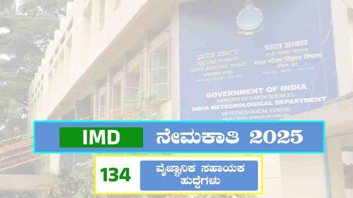 IMD Recruitment 2025 : ಹವಾಮಾನ ಇಲಾಖೆಯಲ್ಲಿ (IMD) ವೈಜ್ಞಾನಿಕ ಸಹಾಯಕ ಹುದ್ದೆಗಳು! 134 ಹುದ್ದೆಗಳಿಗೆ ಅರ್ಜಿ ಆಹ್ವಾನ, ಪೂರ್ತಿ ವಿವರ ಇಲ್ಲಿದೆ..!