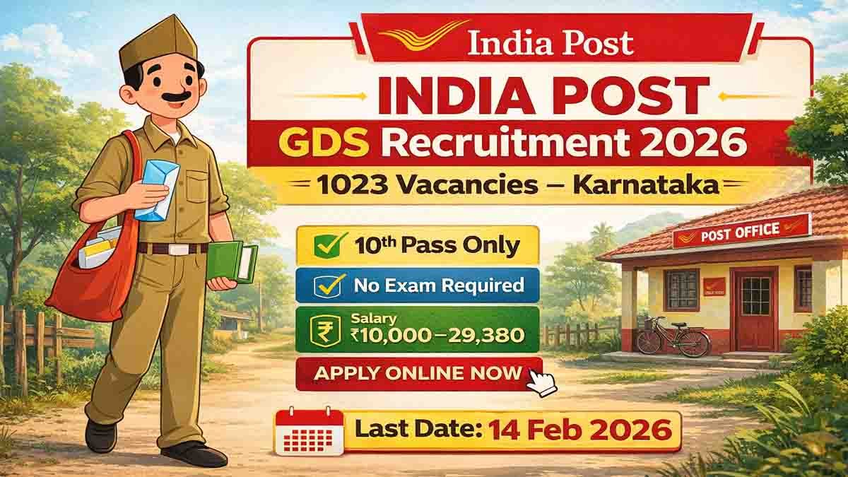ನೀವು ಕೇವಲ 10ನೇ ತರಗತಿ ಪೂರ್ಣಗೊಳಿಸಿ ಸರ್ಕಾರಿ ಉದ್ಯೋಗದ ನಿರೀಕ್ಷೆಯಲ್ಲಿದ್ದೀರಾ? ಯಾವುದೇ ಕಠಿಣ ಸ್ಪರ್ಧಾತ್ಮಕ ಪರೀಕ್ಷೆಗಳಿಲ್ಲದೆ, ಕೇವಲ ನಿಮ್ಮ ಅಂಕಗಳ ಆಧಾರದ ಮೇಲೆ ಕೆಲಸ ಪಡೆಯುವ ಅದ್ಭುತ ಅವಕಾಶ ಈಗ ನಿಮ್ಮ ಮುಂದಿದೆ. ಭಾರತೀಯ ಅಂಚೆ ಇಲಾಖೆಯು (India Post) 2026ನೇ ಸಾಲಿನ ನೇಮಕಾತಿ ಪ್ರಕ್ರಿಯೆಯನ್ನು ಆರಂಭಿಸಿದ್ದು, ಕರ್ನಾಟಕದಾದ್ಯಂತ ಒಟ್ಟು 1,023 ಗ್ರಾಮೀಣ ಡಾಕ್ ಸೇವಕ್ (India Post GDS Recruitment 2026) ಹುದ್ದೆಗಳನ್ನು ಭರ್ತಿ ಮಾಡುತ್ತಿದೆ. ಈ ಸುವರ್ಣಾವಕಾಶದ ಸಂಪೂರ್ಣ ಮಾಹಿತಿ ಇಲ್ಲಿದೆ.