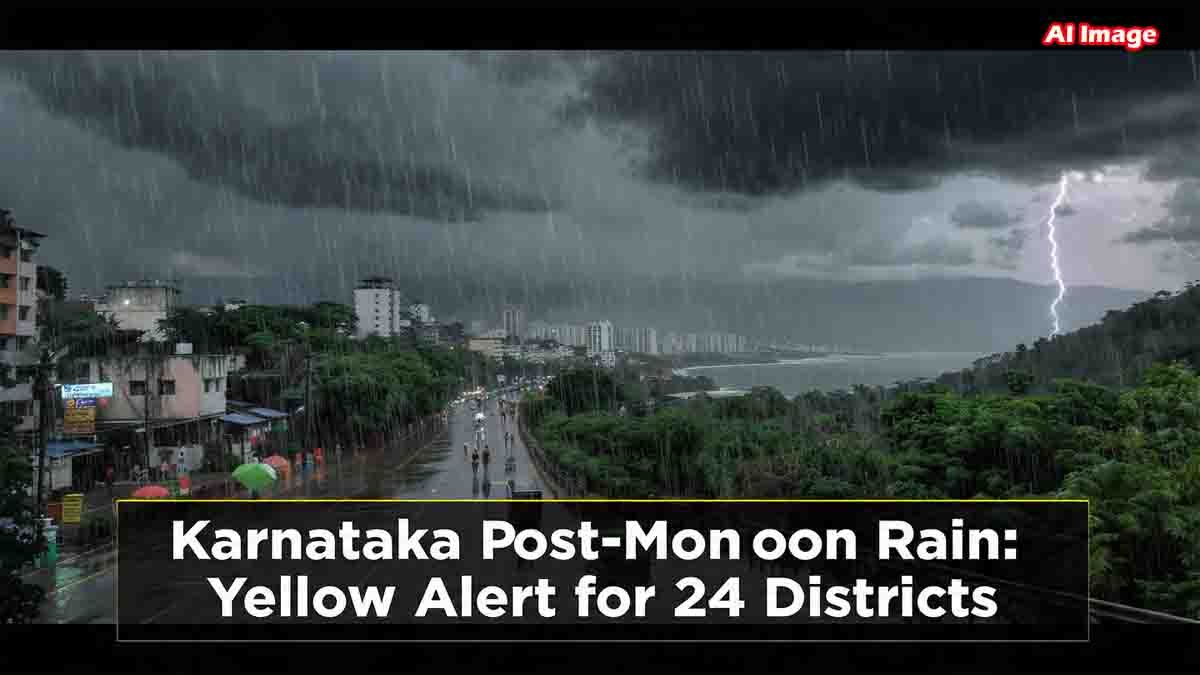 Heavy Rain – ಕರ್ನಾಟಕ ರಾಜ್ಯದಲ್ಲಿ ಮುಂಗಾರು ಪೂರ್ವ ಮಳೆ (Post-Monsoon Rains) ತೀವ್ರಗೊಂಡಿದ್ದು, ಭಾರತೀಯ ಹವಾಮಾನ ಇಲಾಖೆ (IMD) ಮುಂದಿನ ಐದು ದಿನಗಳ ಹವಾಮಾನ ವರದಿಯನ್ನು ಪ್ರಕಟಿಸಿದೆ. ಅಕ್ಟೋಬರ್ ತಿಂಗಳಾಂತ್ಯದವರೆಗೂ ವರುಣನ ಆರ್ಭಟ ಮುಂದುವರೆಯುವ ಸಾಧ್ಯತೆ ಇದ್ದು, ರಾಜ್ಯದ ಒಟ್ಟು 24 ಜಿಲ್ಲೆಗಳಿಗೆ ಯೆಲ್ಲೋ ಅಲರ್ಟ್‌ (Yellow Alert) ಘೋಷಣೆ ಮಾಡಲಾಗಿದೆ.