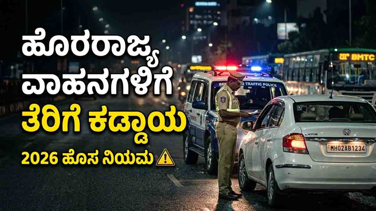 ನೀವು ಹೊರರಾಜ್ಯದ ನಂಬರ್ ಪ್ಲೇಟ್ ಇರುವ ಕಾರು ಅಥವಾ ಬೈಕ್ ಅನ್ನು ಬೆಂಗಳೂರಿನ ರಸ್ತೆಗಳಲ್ಲಿ ಓಡಿಸುತ್ತಿದ್ದೀರಾ? ಹಾಗಿದ್ದರೆ ಈ ಸುದ್ದಿ ನಿಮಗಾಗಿ. ಕರ್ನಾಟಕ ಸರ್ಕಾರವು ಹೊರರಾಜ್ಯ ನೋಂದಣಿಯ ವಾಹನಗಳ (Karnataka Vehicle Tax 2026) ಮೇಲೆ ಕಣ್ಣಿಟ್ಟಿದ್ದು, ಹೊಸ ತೆರಿಗೆ ನಿಯಮವನ್ನು ಜಾರಿಗೆ ತಂದಿದೆ. ಇನ್ನು ಮುಂದೆ ನಿಮ್ಮ ವಾಹನಕ್ಕೆ ಕರ್ನಾಟಕದಲ್ಲಿ ತೆರಿಗೆ ಪಾವತಿಸುವುದು ಅನಿವಾರ್ಯವಾಗಲಿದೆ.