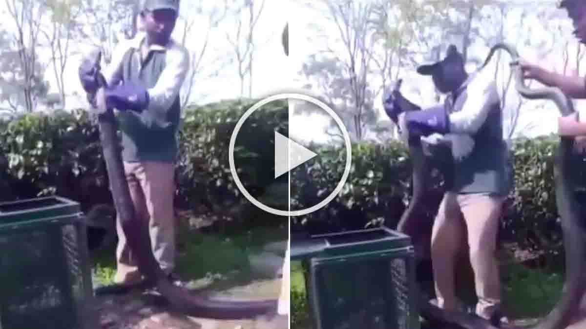 King Cobra Rescue : ಮೈ ನಡುಗಿಸುವ ದೃಶ್ಯ! 18 ಅಡಿ ಉದ್ದದ ಕಿಂಗ್ ಕೋಬ್ರಾ ಹಿಡಿದ ಅರಣ್ಯ ಸಿಬ್ಬಂದಿ: ವಿಡಿಯೋ ವೈರಲ್…!