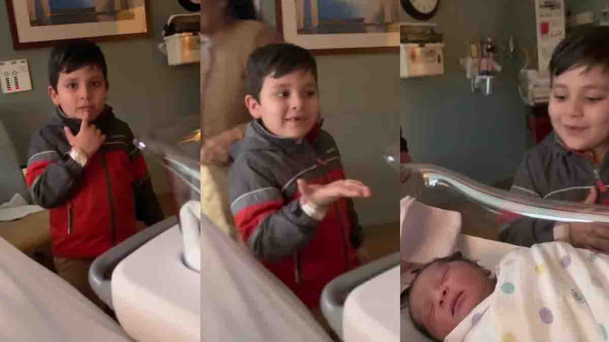 ಮನೆಯಲ್ಲಿ ಮಕ್ಕಳಿದ್ದರೆ ಆ ಸಂಭ್ರಮವೇ ಬೇರೆ. ಅದರಲ್ಲೂ ಆ ಮನೆಗೆ ಮತ್ತೊಂದು ಪುಟ್ಟ ಮಗುವಿನ (Newborn Baby) ಆಗಮನವಾಗುತ್ತಿದೆ ಎಂದರೆ, ಅಲ್ಲಿನ ಮೊದಲ ಮಗುವಿನ ಖುಷಿಗಂತೂ ಪಾರವೇ ಇರುವುದಿಲ್ಲ. ಅಮ್ಮ ಆಸ್ಪತ್ರೆಯಿಂದ ಪುಟ್ಟ ಪಾಪುವನ್ನು ಕರೆತರುವ ಕ್ಷಣಕ್ಕಾಗಿ ಮಕ್ಕಳು ಕಾತರದಿಂದ ಕಾಯುತ್ತಿರುತ್ತಾರೆ. ಸದ್ಯ ಅಂತಹದ್ದೇ ಒಂದು ಮನಸೆಳೆಯುವ ವಿಡಿಯೋ (Video) ಸಾಮಾಜಿಕ ಜಾಲತಾಣದಲ್ಲಿ ಸಖತ್ ವೈರಲ್ ಆಗುತ್ತಿದೆ.