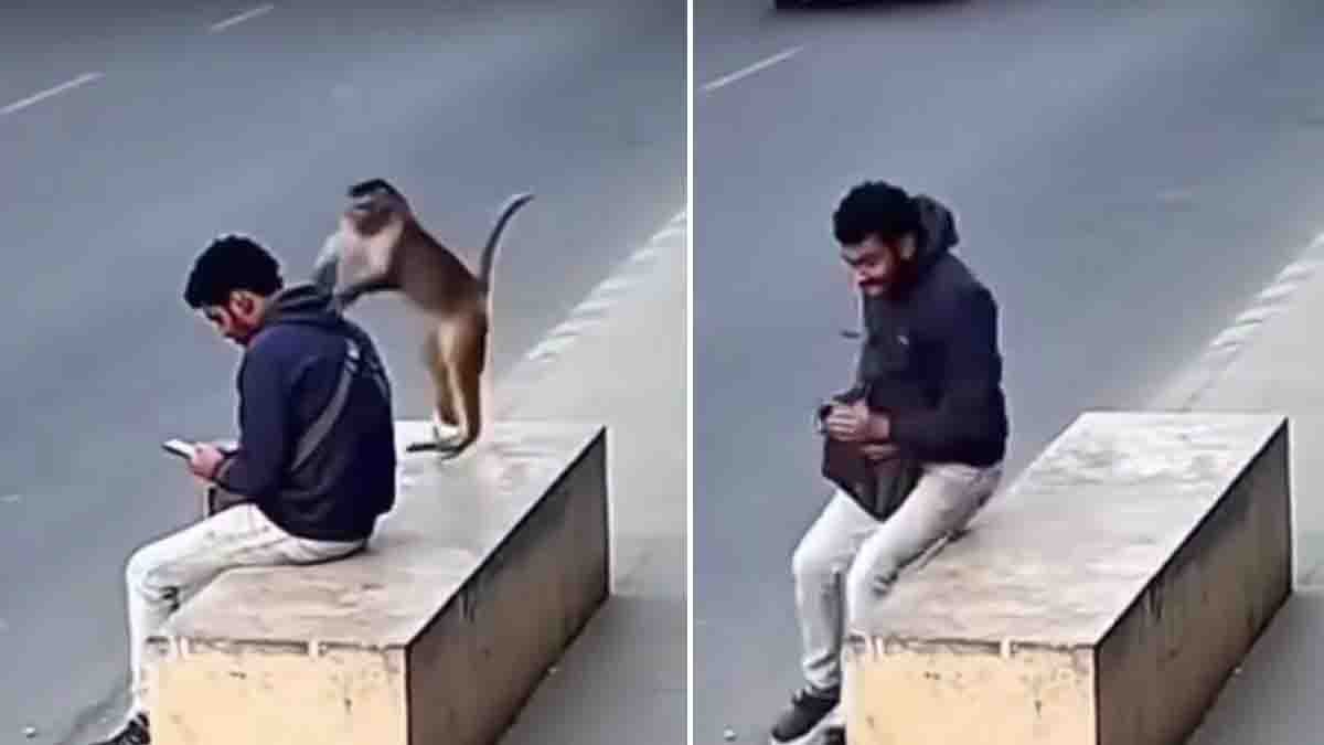 ವೈರಲ್ ಆಗಿರುವ ಸಿಸಿಟಿವಿ ದೃಶ್ಯಾವಳಿಯಲ್ಲಿ ಈ ಅಚ್ಚರಿಯ ಘಟನೆ ಸೆರೆಯಾಗಿದೆ. ಒಬ್ಬ ಯುವಕ ರಸ್ತೆಯ ಬದಿಯಲ್ಲಿರುವ ಕಟ್ಟೆಯ ಮೇಲೆ ಆರಾಮವಾಗಿ ಕುಳಿತಿದ್ದಾನೆ. ಅಷ್ಟರಲ್ಲಿ ಎಲ್ಲಿಂದಲೋ ಬಂದ ಕೋತಿಯೊಂದು ದಿಢೀರನೆ ಅವನ ತಲೆಯ ಮೇಲೆ ಹತ್ತಿ ಕುಳಿತುಕೊಳ್ಳುತ್ತದೆ. ಇದರಿಂದ ಗಾಬರಿಗೊಂಡ ಯುವಕ, ಕೋತಿಯಿಂದ ತಪ್ಪಿಸಿಕೊಳ್ಳಲು ತಕ್ಷಣ ಆ ಜಾಗದಿಂದ ಎದ್ದು ಪಕ್ಕಕ್ಕೆ ಸರಿಯುತ್ತಾನೆ.