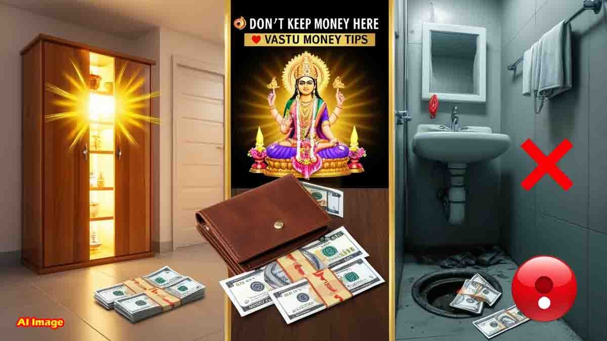 ವಾಸ್ತು ಪ್ರಕಾರ, ಹಣವು ಧನಾತ್ಮಕ ಶಕ್ತಿಯ ಸಂಕೇತವಾಗಿದೆ ಮತ್ತು ಅದನ್ನು ಯಾವಾಗಲೂ ಶುದ್ಧ ಹಾಗೂ ಗೌರವಯುತ ಸ್ಥಳಗಳಲ್ಲಿ ಇಡಬೇಕು. ಬಾತ್ರೂಮ್ಗಳು ಮತ್ತು ಕೊಳಕು ಸ್ಥಳಗಳು ನಕಾರಾತ್ಮಕ ಶಕ್ತಿಯನ್ನು ಹೊಂದಿರುತ್ತವೆ. ಅಂತಹ ಸ್ಥಳಗಳಲ್ಲಿ ಹಣವನ್ನು ಇಟ್ಟರೆ ಸಂಪತ್ತಿನ ಹರಿವು ಕಡಿಮೆಯಾಗುತ್ತದೆ. ಆದ್ದರಿಂದ, ಹಣವನ್ನು ಪರ್ಸ್ ಅಥವಾ ಬೀರುವಿನಲ್ಲಿ ಇಡುವುದು ಉತ್ತಮ. ಶುಕ್ರವಾರದಂದು ಕುಬೇರ ಮತ್ತು ಲಕ್ಷ್ಮಿ ದೇವಿಯನ್ನು ಪೂಜಿಸುವುದು ಆರ್ಥಿಕ ಸಮೃದ್ಧಿಗೆ ಸಹಕಾರಿ.