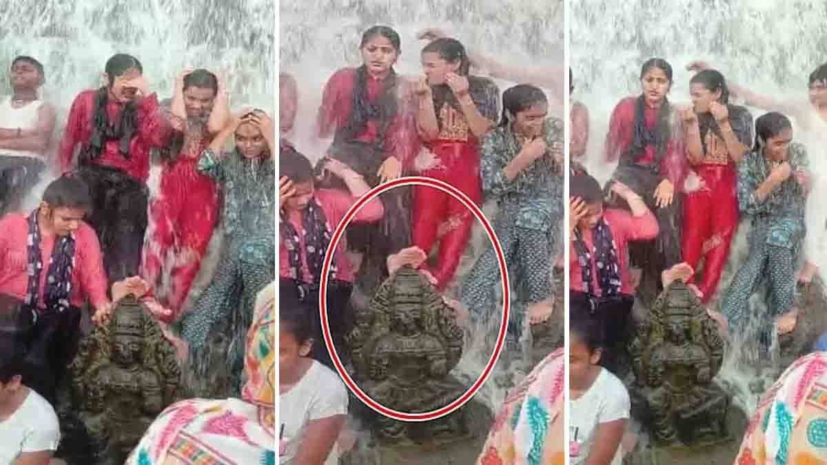 ಪ್ರವಾಸಕ್ಕೆಂದು ಬಂದಿದ್ದ ಮುಸ್ಲಿಂ ಕುಟುಂಬಕ್ಕೆ ಸೇರಿದ ಯುವತಿಯರು ಈ ಕೃತ್ಯ ಎಸಗಿದ್ದಾರೆ ಎಂದು ಹೇಳಲಾಗಿದೆ. ಜಲಾಶಯದ ನೀರಿನಲ್ಲಿ ಮೋಜು ಮಸ್ತಿ ಮಾಡುವ ಸಂದರ್ಭದಲ್ಲಿ, ಸ್ನಾನ ಮಾಡಲು ವಿಗ್ರಹದ ಆಸರೆ ಪಡೆದಿದ್ದಾರೆ. ಈ ಸಂದರ್ಭದಲ್ಲಿ, ತಾವು ನಿಂತಿರುವುದು ಒಂದು ಪೂಜಾ ವಿಗ್ರಹದ ಮೇಲೆ ಎಂಬುದನ್ನು ಅರಿತುಕೊಳ್ಳದ ಅಥವಾ ನಿರ್ಲಕ್ಷಿಸಿದ ಮಹಿಳೆಯರ ವರ್ತನೆಗೆ ವ್ಯಾಪಕ ಖಂಡನೆ ವ್ಯಕ್ತವಾಗಿದೆ. ಘಟನೆ ನಡೆದು ಮೂರು ದಿನಗಳಾಗಿವೆ ಎಂದು ಹೇಳಲಾಗುತ್ತಿದೆ. Read this also : ನಿಮ್ಮ Google Chrome ಮತ್ತು Firefox ಬ್ರೌಸರ್ಗಳಿಗೆ ಕೇಂದ್ರದಿಂದ ದೊಡ್ಡ ಎಚ್ಚರಿಕೆ..!